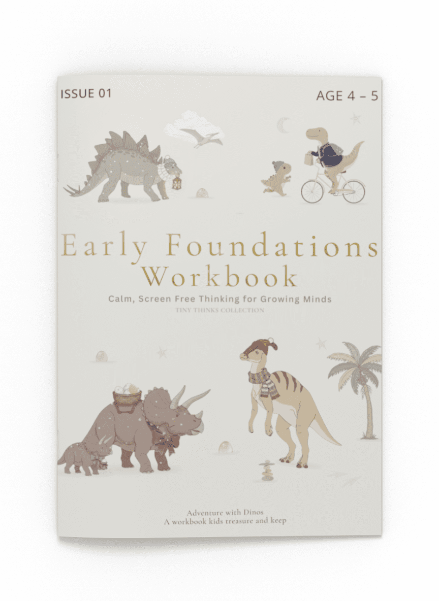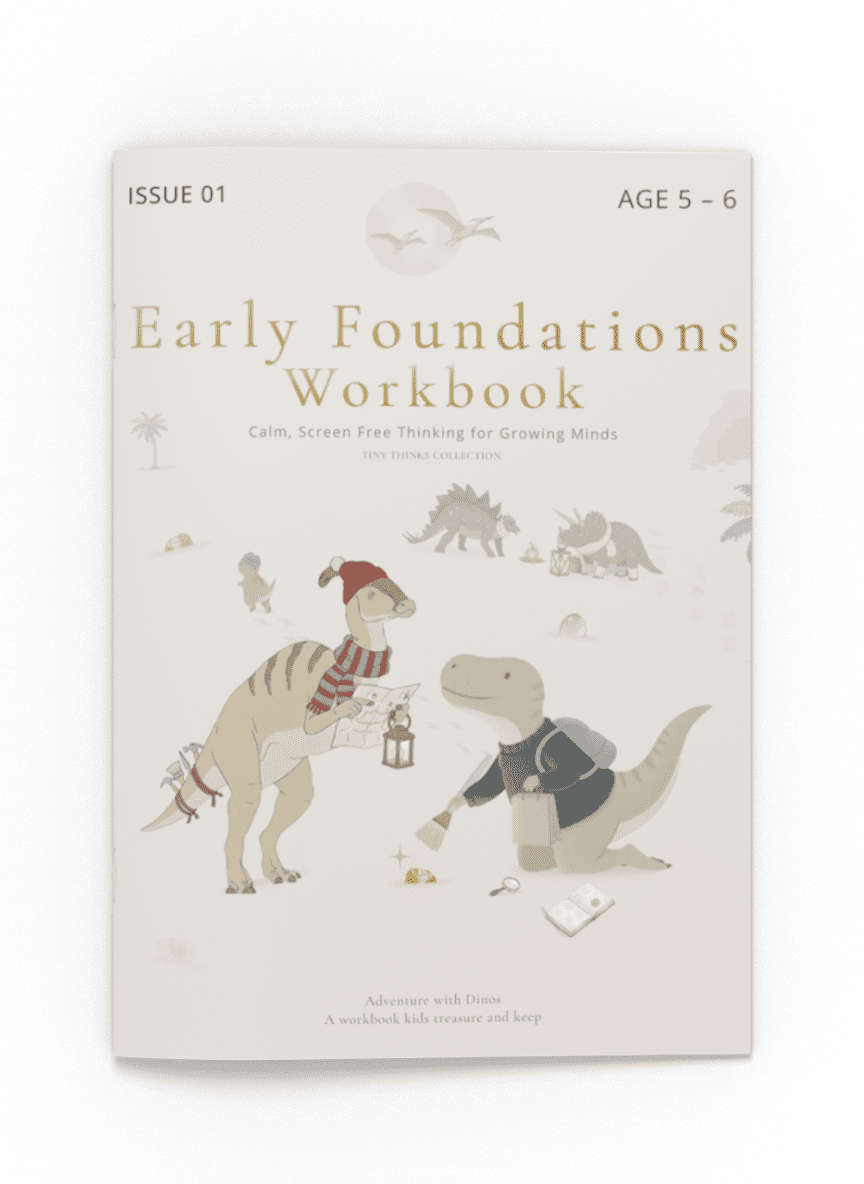 What are calm, screen-free activities for kids? Tiny Thinks makes gentle, story-led workbooks ages 3–7.
