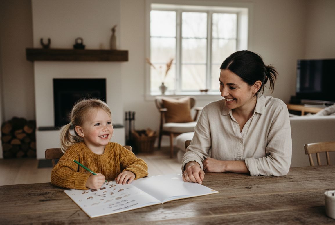 A structured kindergarten prep workbook for 4–5 year olds designed to strengthen logic, focus, sequencing, and early problem-solving skills through calm, screen-free learning activities.