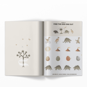 Tiny Thinks workbooks are designed for progessive learning, that grows with the child. It has beautiful, calm layout, detailed designs, no clutter, progressive thinking tasks, focus building. Every page trains one real cognitive skill.